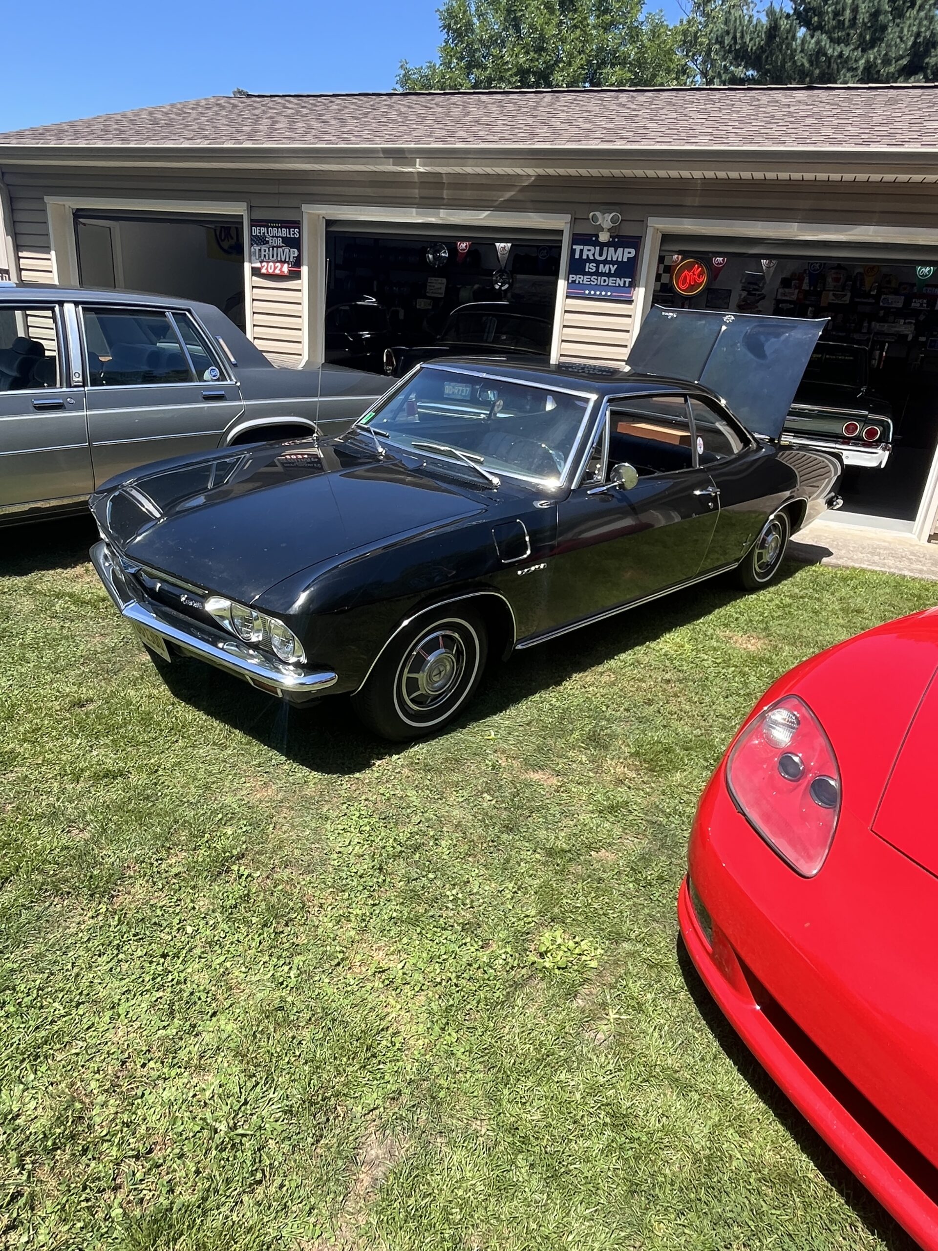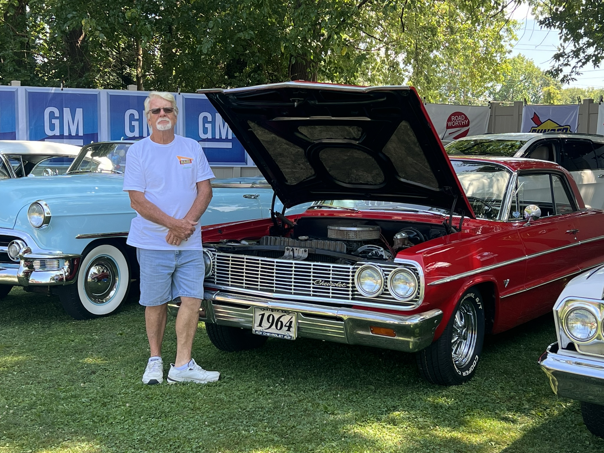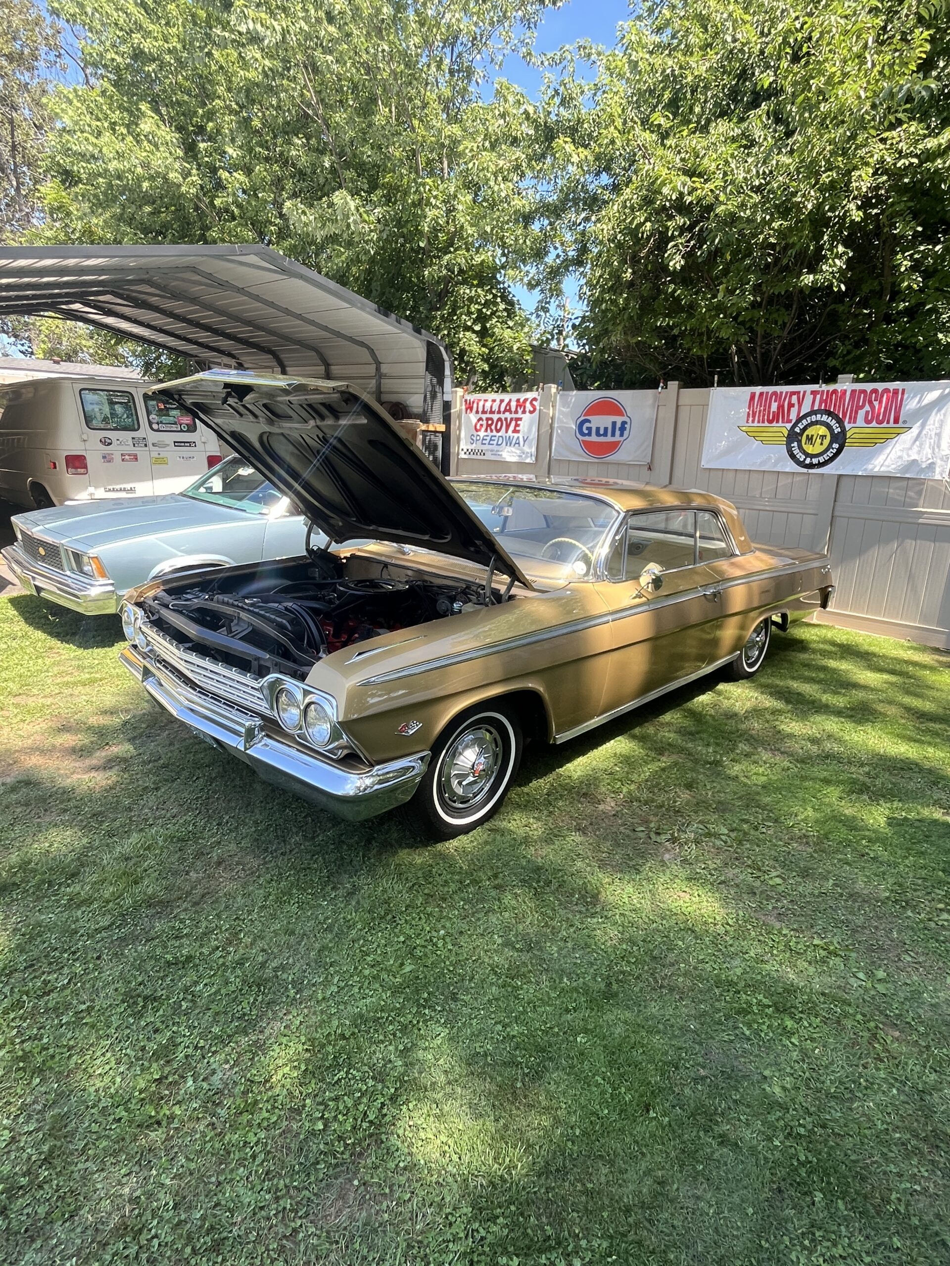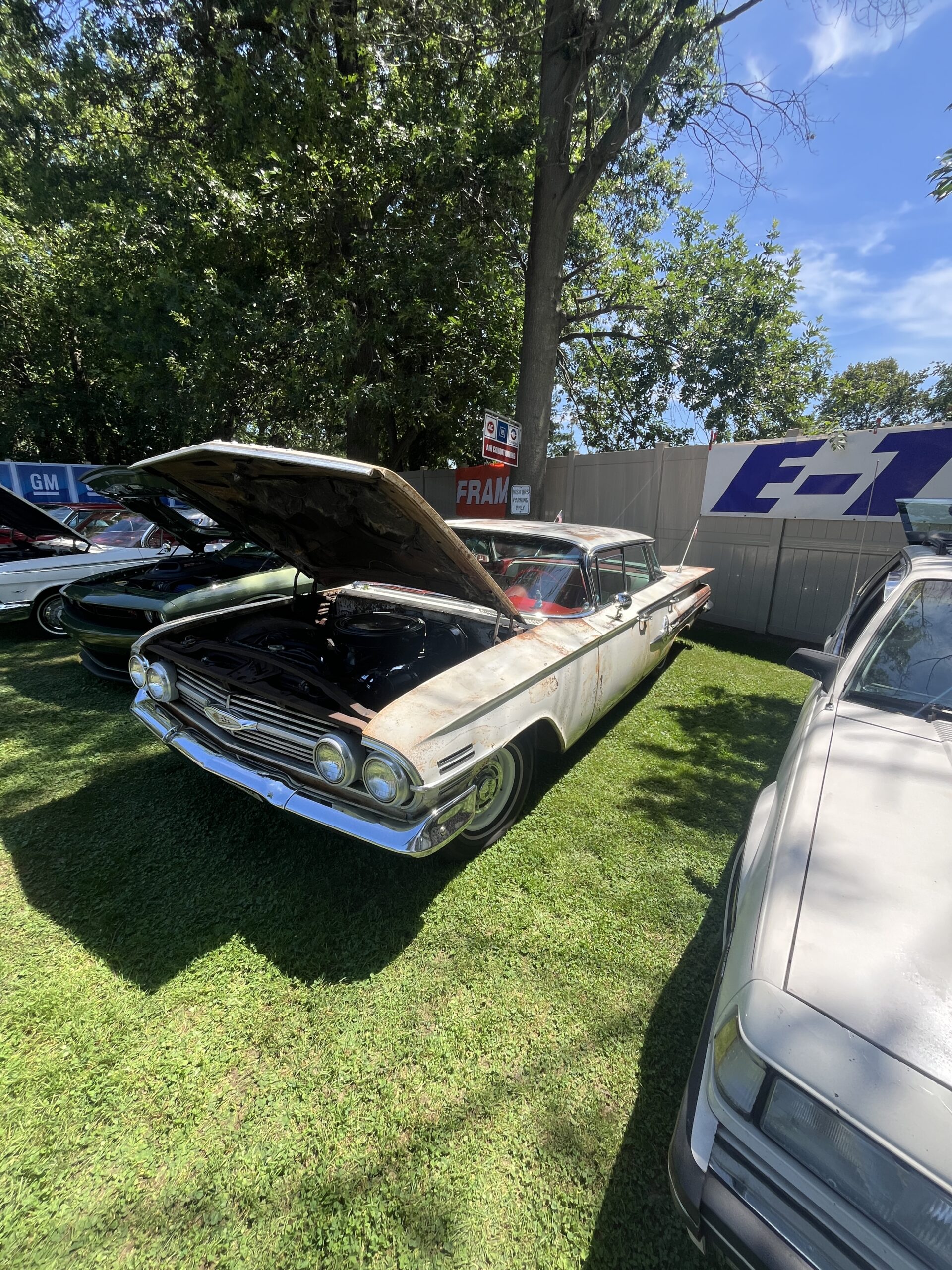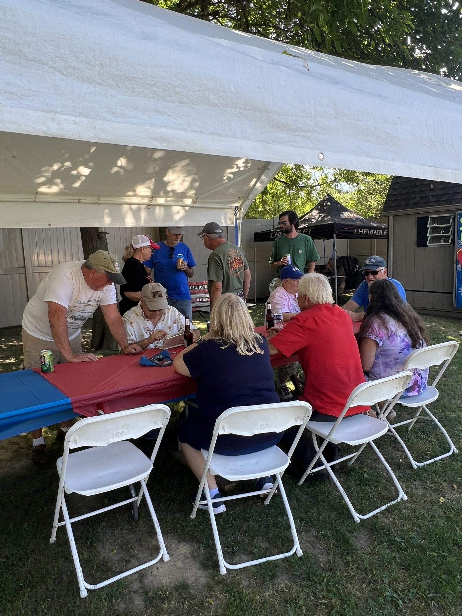 The Dennery Picnic was the Event of the Year! If you missed this picnic, you missed a great day. Dawn and John put on a truly excellent event once again. Their yard was decked out with auto related signs everywhere. (I wonder where they all came from?) Our club was joined by members of the VCCA (Vintage Chevrolet Club of America) Several in attendance are members of both clubs. It was fun seeing a number of cars I hadn’t seen before. One in particular, a robin’s egg blue 1953 BelAir convertible was amazing. There was plenty of food and drink, our own Steve Calandra spinning records and singing, a pool, nice shady seating areas and toward the end of the day, the dessert bar! I would like to thank Jason Dennery for handling the grill duties. Good Job!