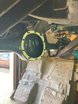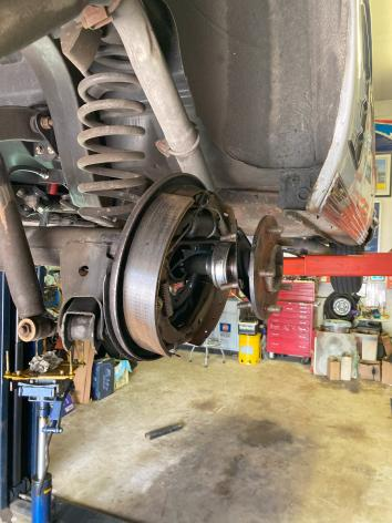 Tom has a lift in his shop and we swapped out the rears in a day. The swap went smoothly except for a stubborn passenger side axle bearing. It took quite a bit of mussel to get that axle out, but we did it.